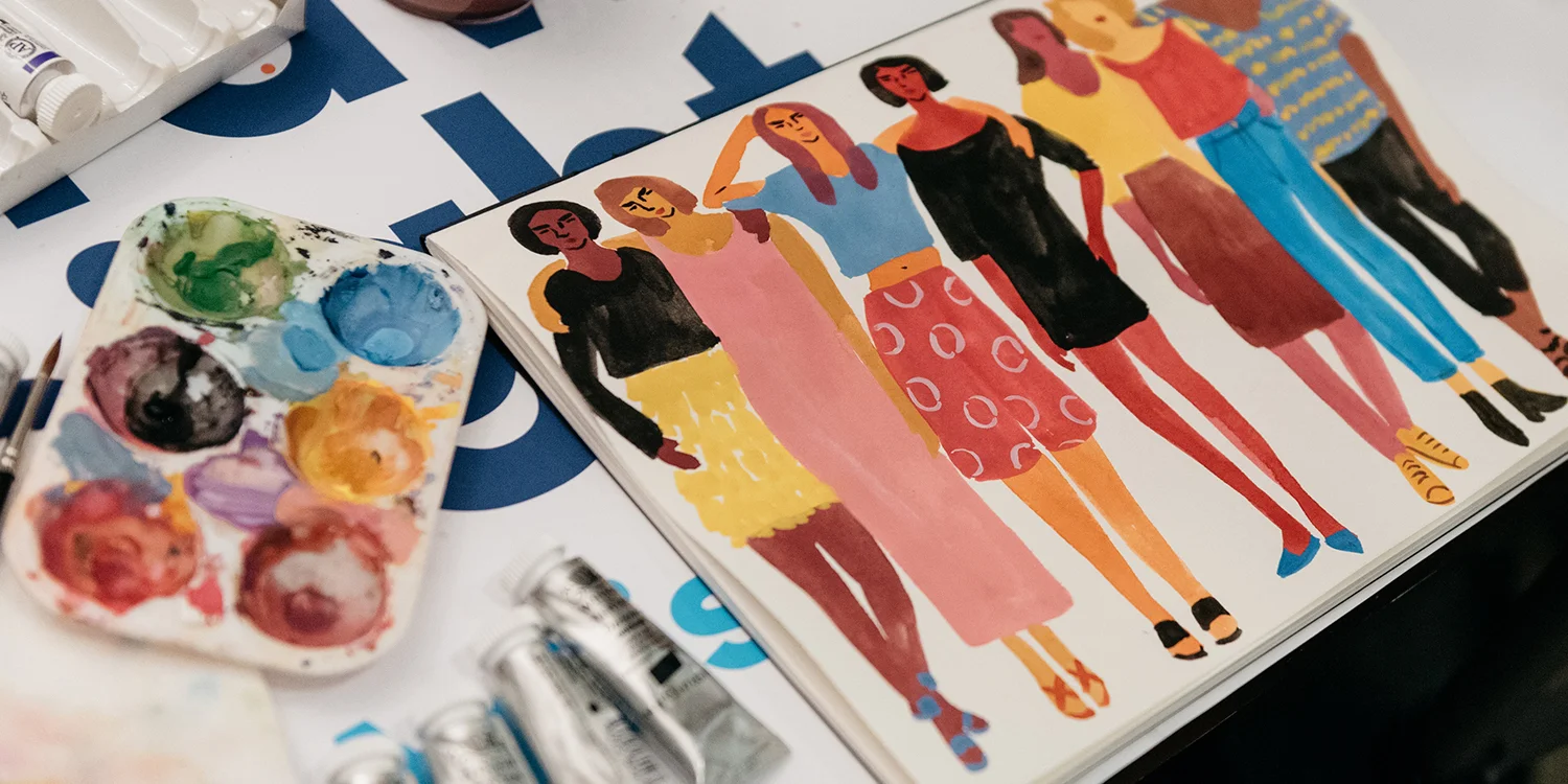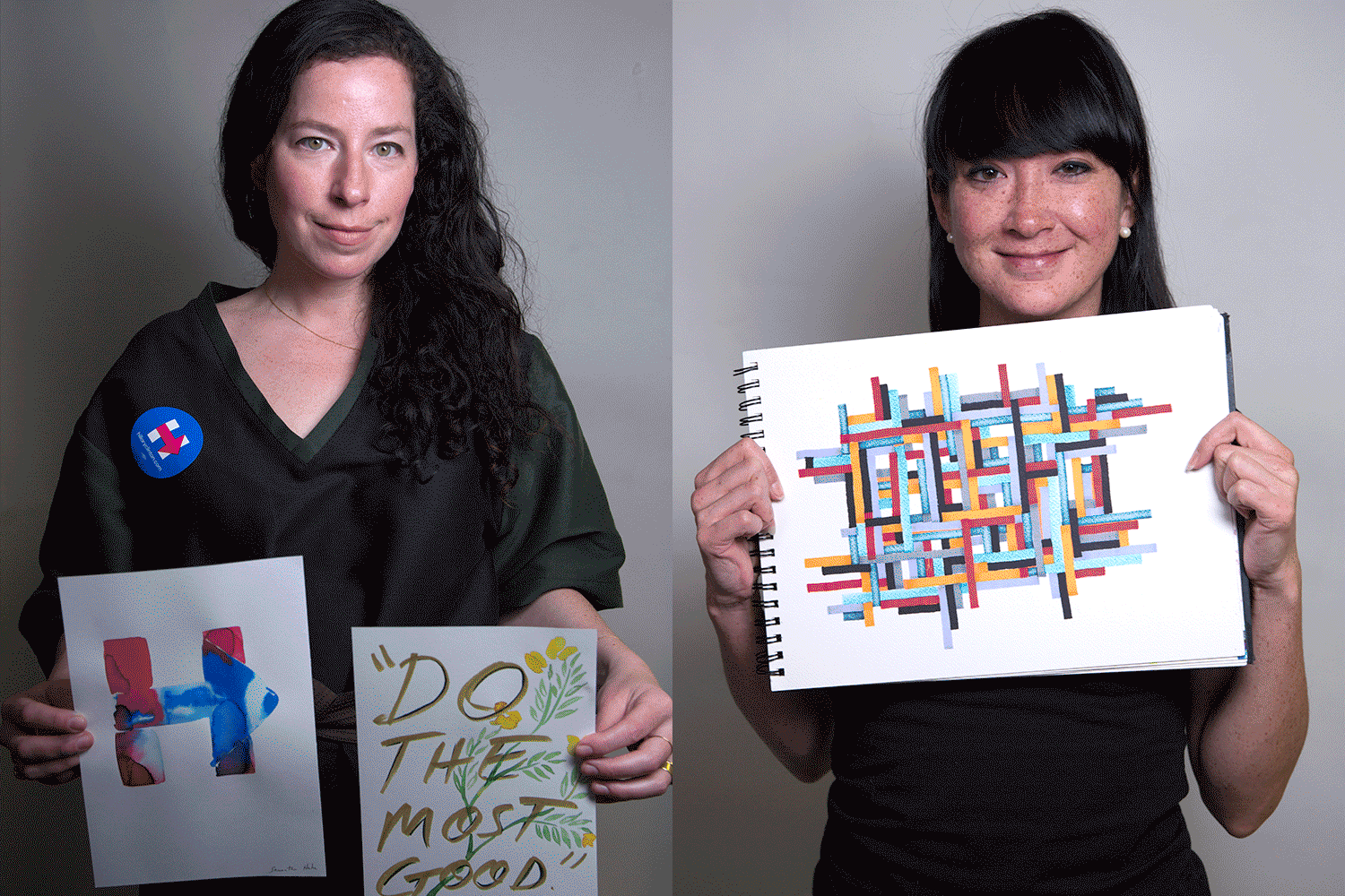 Brooklyn-based illustrators Julia Rothman, Leah Goren, and Rachel Cole founded “Ladies Drawing Night,” a regular gathering of professional female illustrators; Ladies Drawing Night has since become a national network of female illustrators who host drawing nights across the country. Julia and Leah brought their group of female illustrators to campaign headquarters for a night of drawing in support of Hillary.