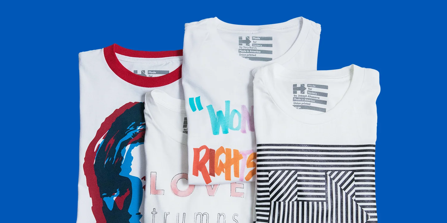 We invited some of fashion’s biggest names to design apparel in support of Hillary Clinton. “Made for History,” as the collection was called, was sold in our merchandise shop and became enormously popular among our supporters.