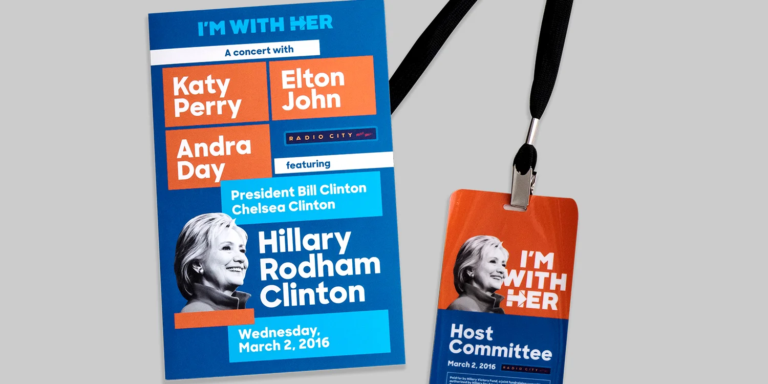 We designed the event collateral for “Stronger Together,” an evening at Broadway’s St. James Theatre in October 2016 that featured performances by dozens of leading actors, musicians, and dancers, as well as remarks by Bill and Chelsea Clinton.