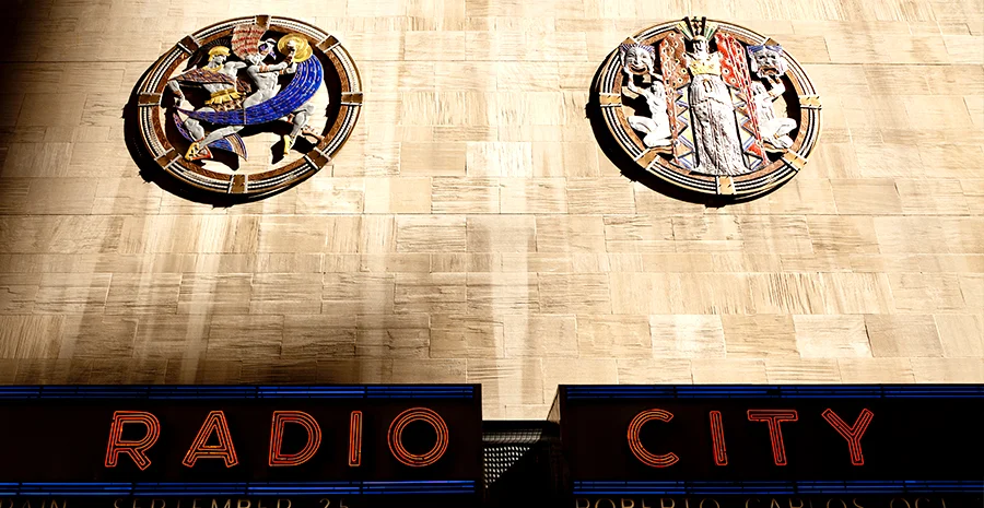 The concert was titled to show support for our candidate. The colors and shapes reflected the art deco architecture of the venue, Radio City Music Hall.