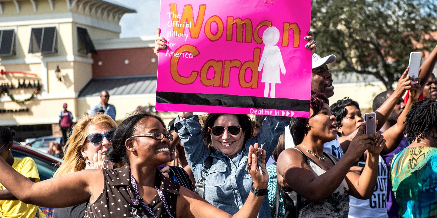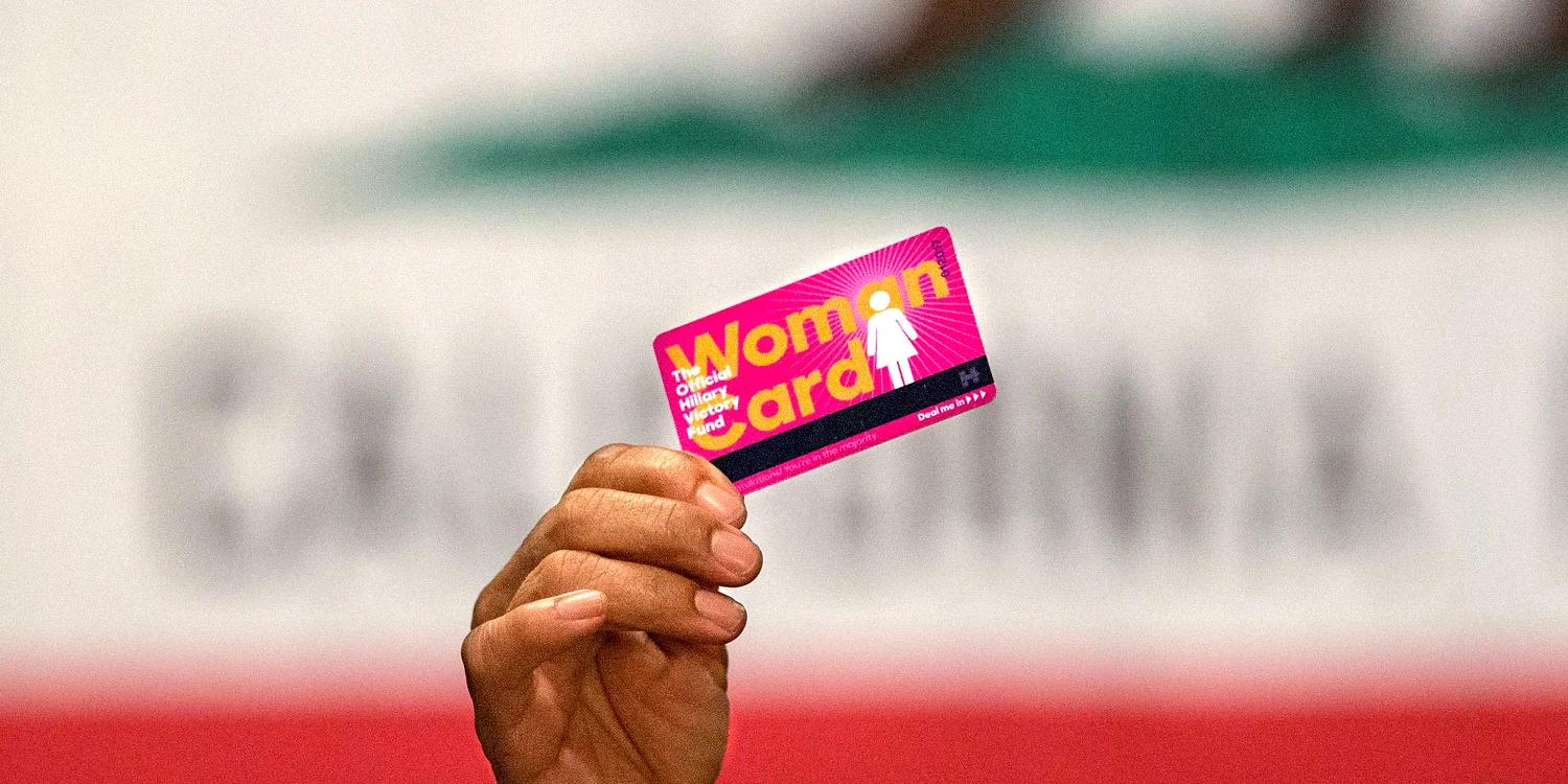 At an election night speech during the primaries, Donald Trump questioned Hillary Clinton’s qualifications by saying, “The only thing she’s got is the woman card.” In response, and in what became a rallying cry for many supporters, Hillary said, “If fighting for women’s healthcare and paid family leave and equal pay is playing the woman card, then deal me in.”